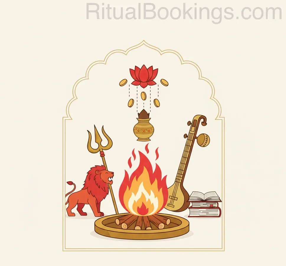 Durga, Lakshmi, and Saraswati are revered deities, and this homa is traditionally performed to seek clarity, balance, and positive alignment during important personal or professional phases.