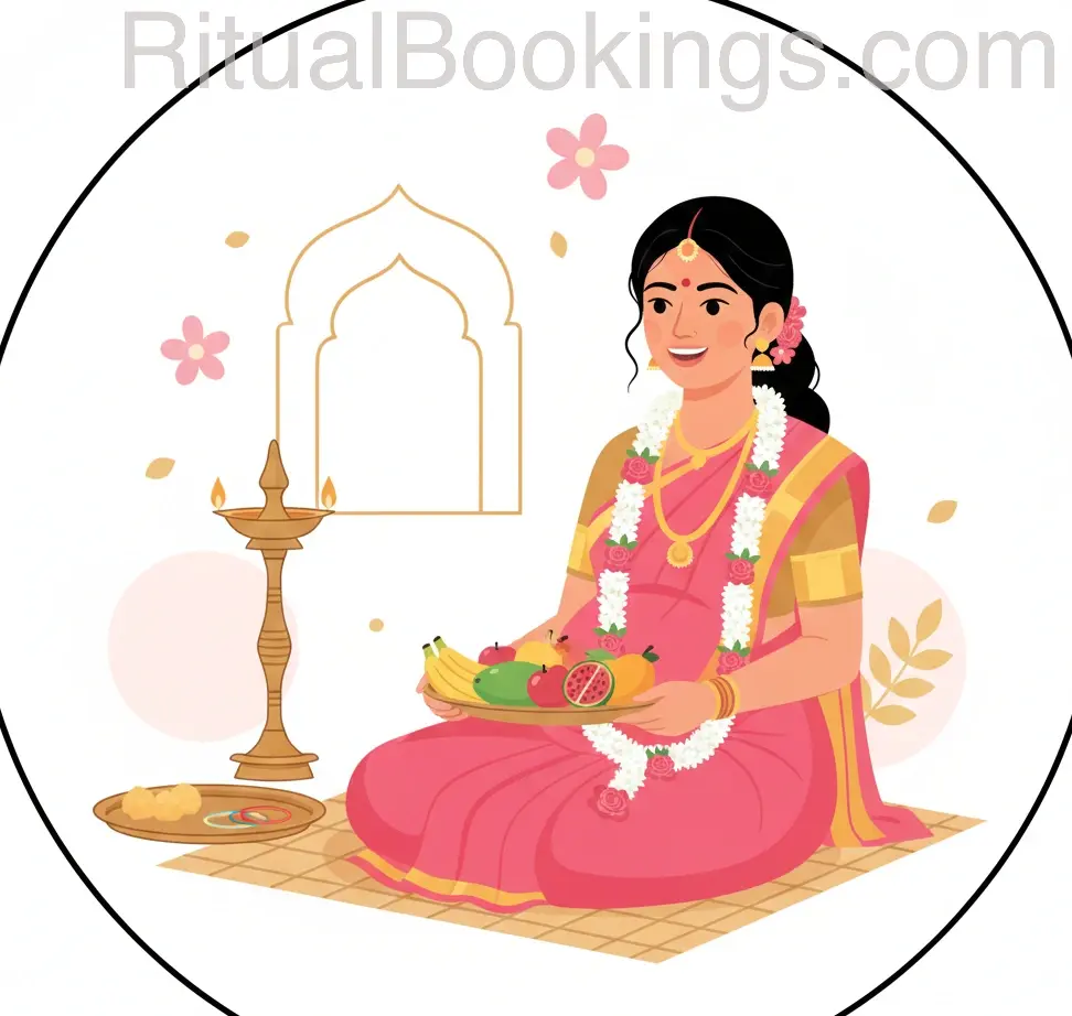 Seemantham is a traditional ceremony performed during the seventh month of pregnancy, where Vedic chants are recited as per customary practice in connection with maternal and child well-being.